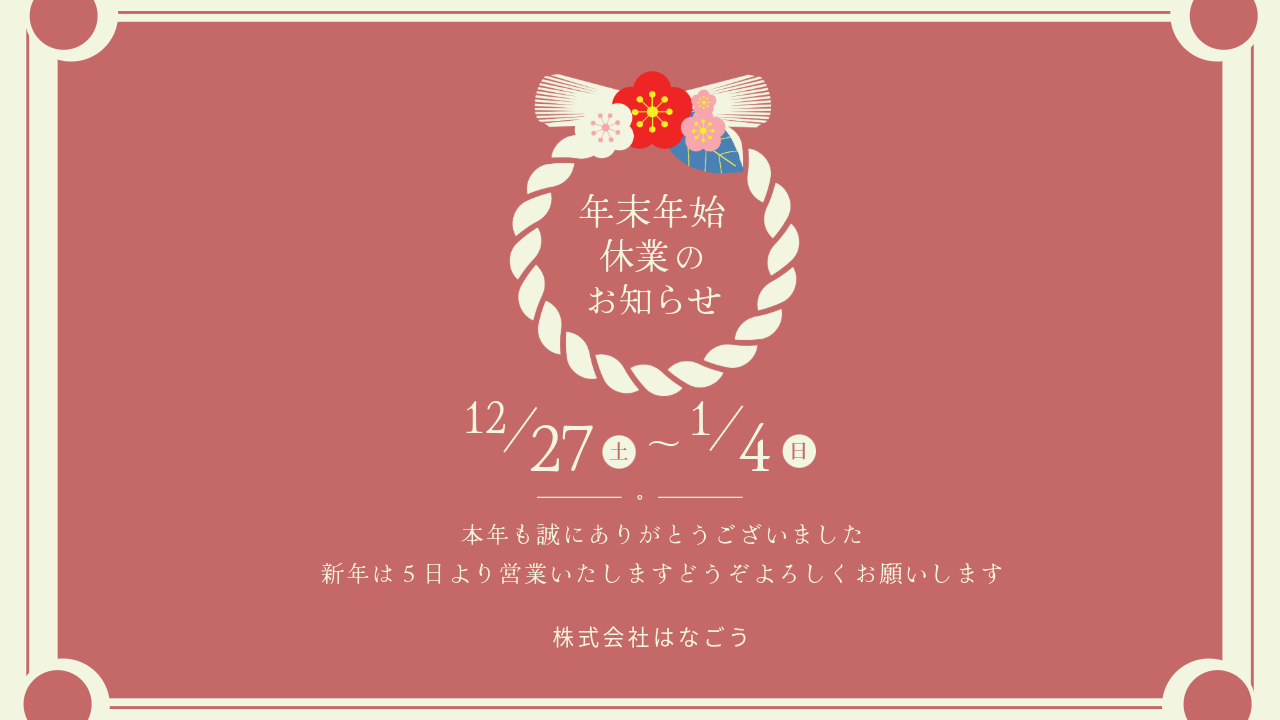 年末年始休業のお知らせ