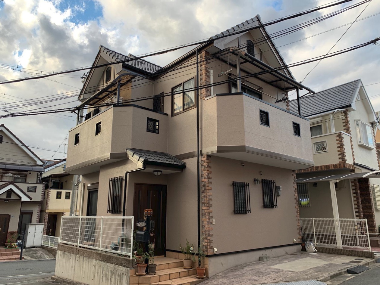 東大阪市 O様邸 外壁・屋根塗装工事/ベイジュ