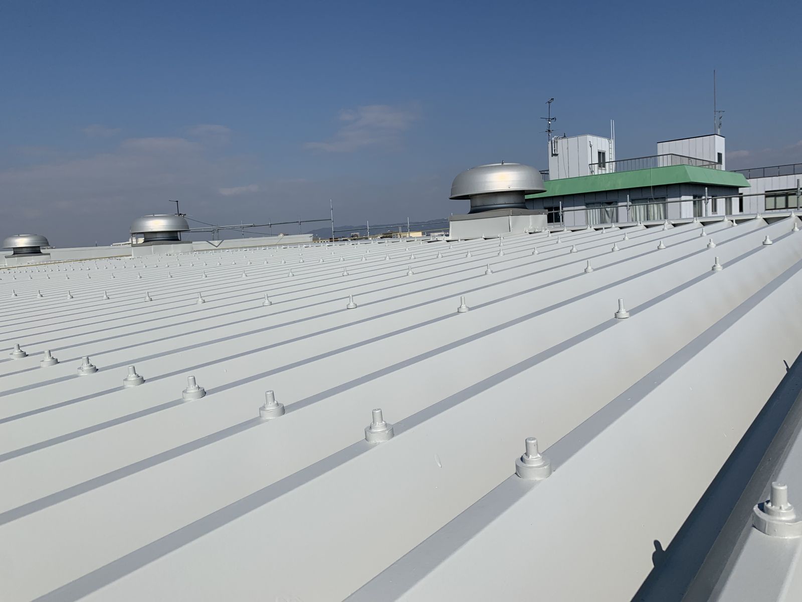また、折半屋根の塗り替えに「遮熱塗料」を使うことで、工場室内の温度上昇を抑えたり室内の空調設備の節電効果が期待できます。