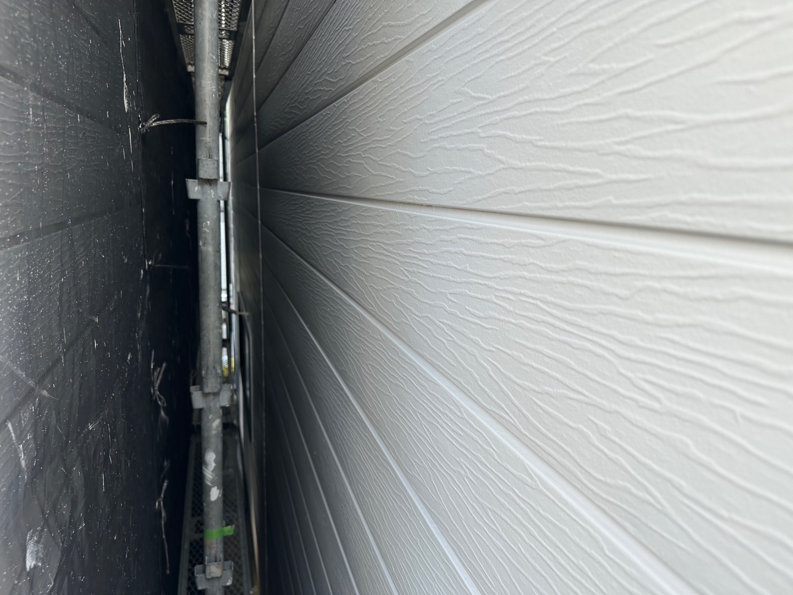 そして色はパールグレイです。こちらは白に少しだけグレーが入った色になります。色見本ではグレーが分かるのですが、晴れた日に実際施工したお家をみるとほとんど白に近くなります。