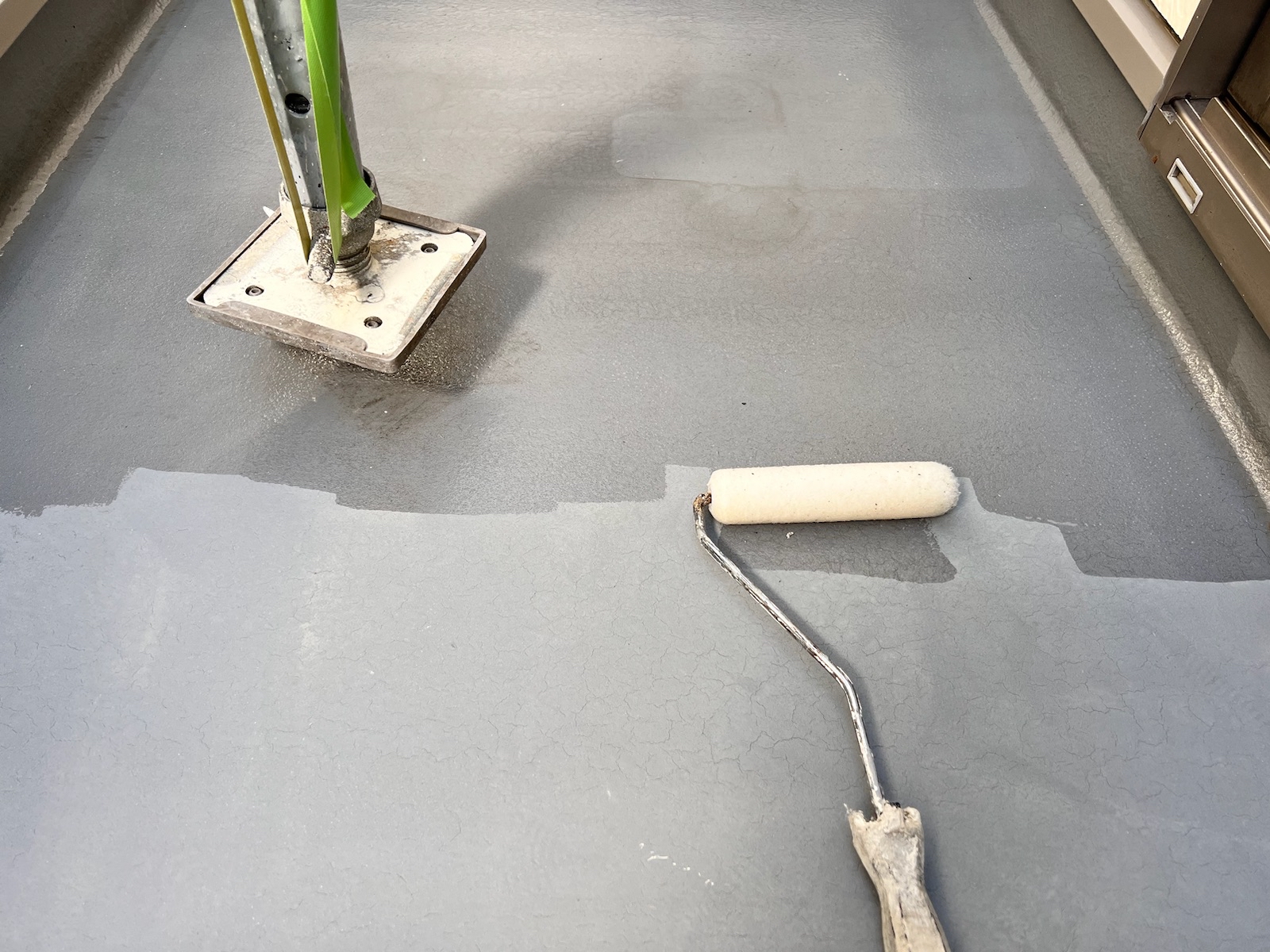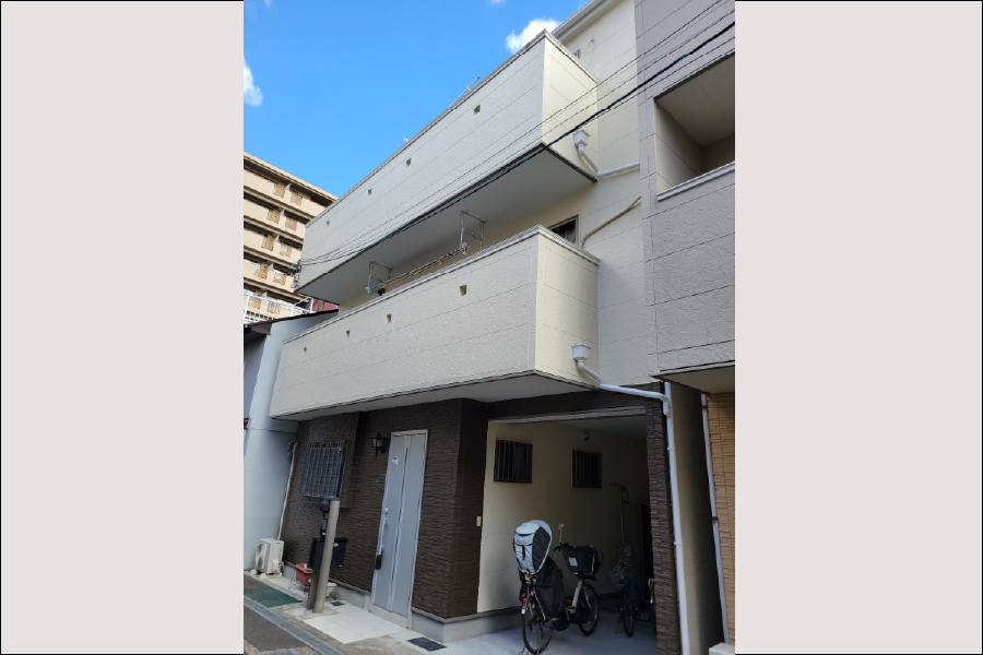 ホームページをご覧いただき、大阪市よりお問い合わせをいただきました。現地調査の結果、シーリングの劣化による剥がれや、塗膜の剥離が確認され、防水機能がほぼ失われている状態でした。そのため、外壁・屋根塗装に加えて、バルコニーFRP防水工事も併せてご提案させていただきました。