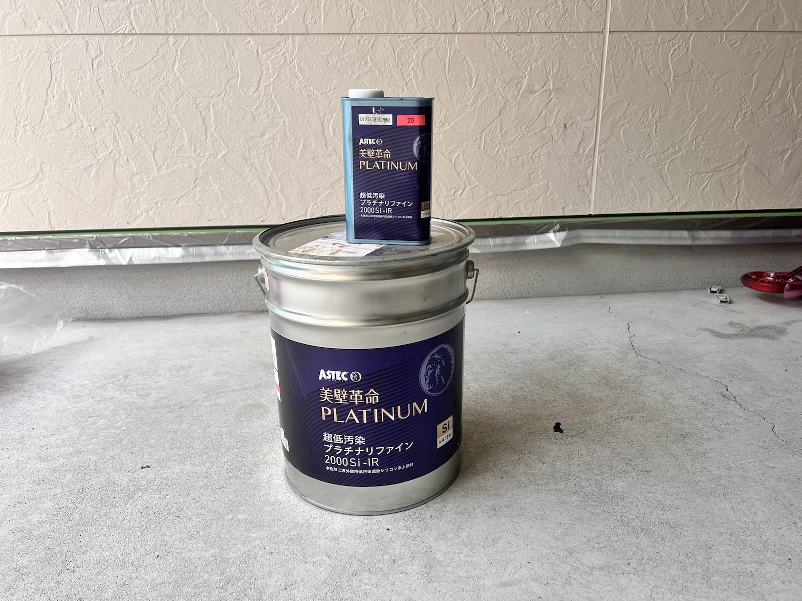 使用済:外壁上塗り材/超低汚染プラチナリファイン2000Si-IR/ニュートラルホワイト
