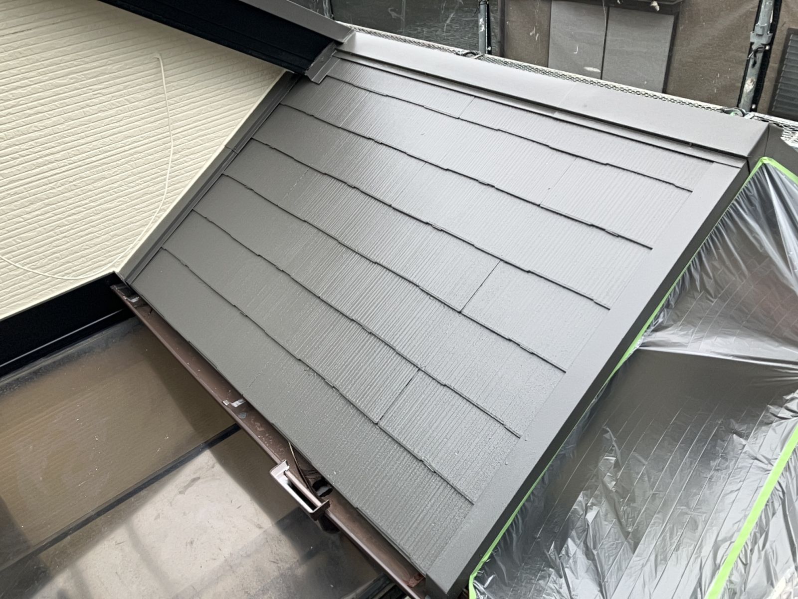 外壁はアステックペイントの「超低汚染プラチナリファイン2000MF-IR」を採用。迷われていた色選びでは、アイアンバーグ×ニュートラルホワイトの2トーンでシックかつ上品なお住まいに生まれ変わりました✨