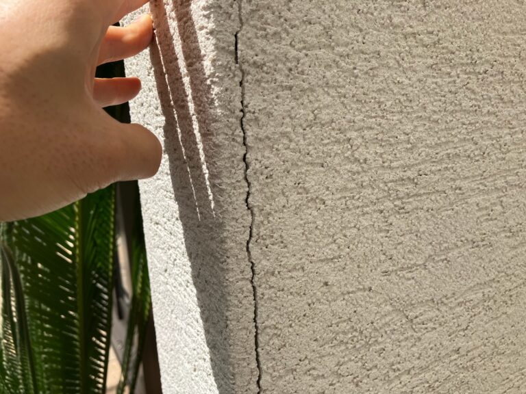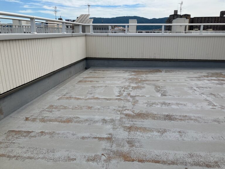 築19年ということで、外壁にはひび割れやシーリングの剥離が見られ、バルコニー・屋上部分では防水層を守るトップコートが剥がれている状態でした。こうした劣化を放置すると、雨水が内部へ浸入しやすくなり、雨漏りの大きな原因となります。