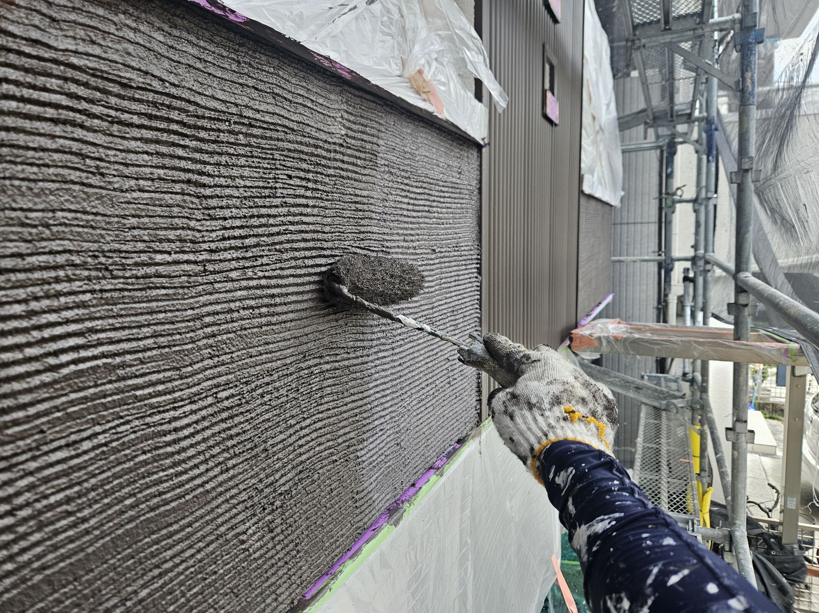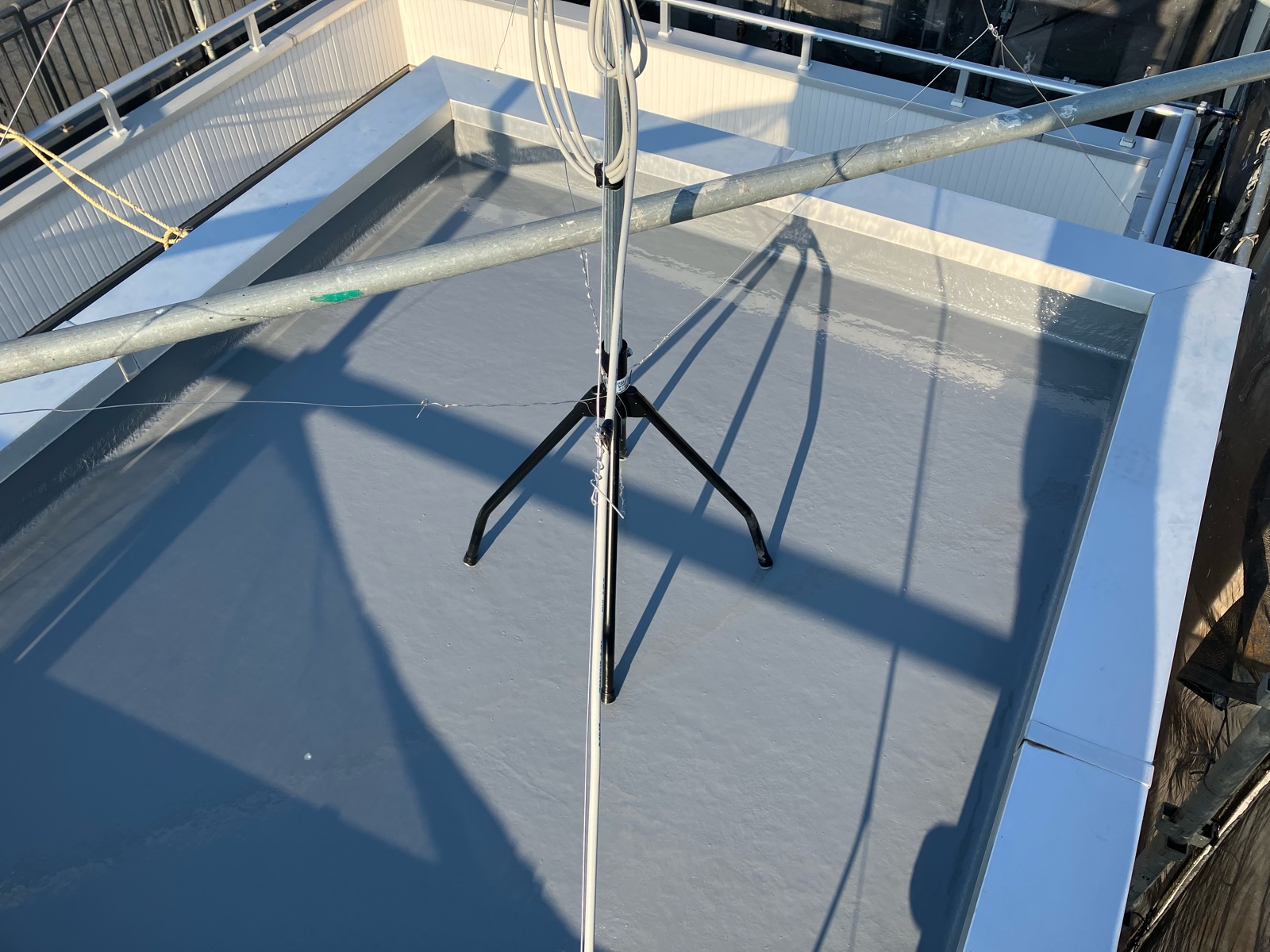 今回はまず、バルコニー・屋上ともにしっかりと防水処置(保護トップコートの再施工)を行い、建物の防水性能を確保。その上で、外壁には高耐久塗料の超低汚染プラチナリファイン2000MF-IRを採用しました。