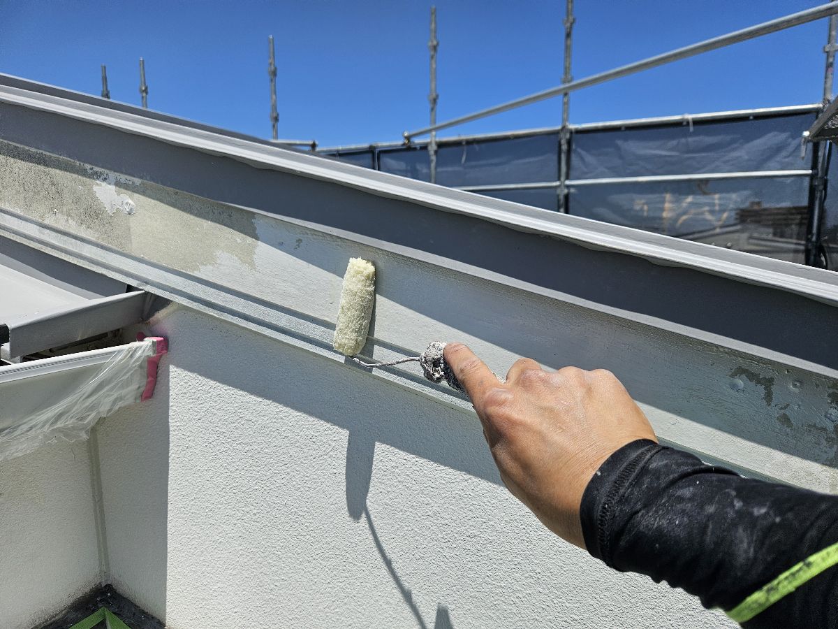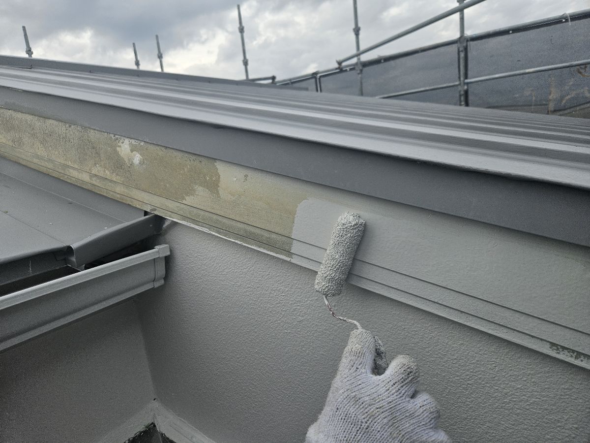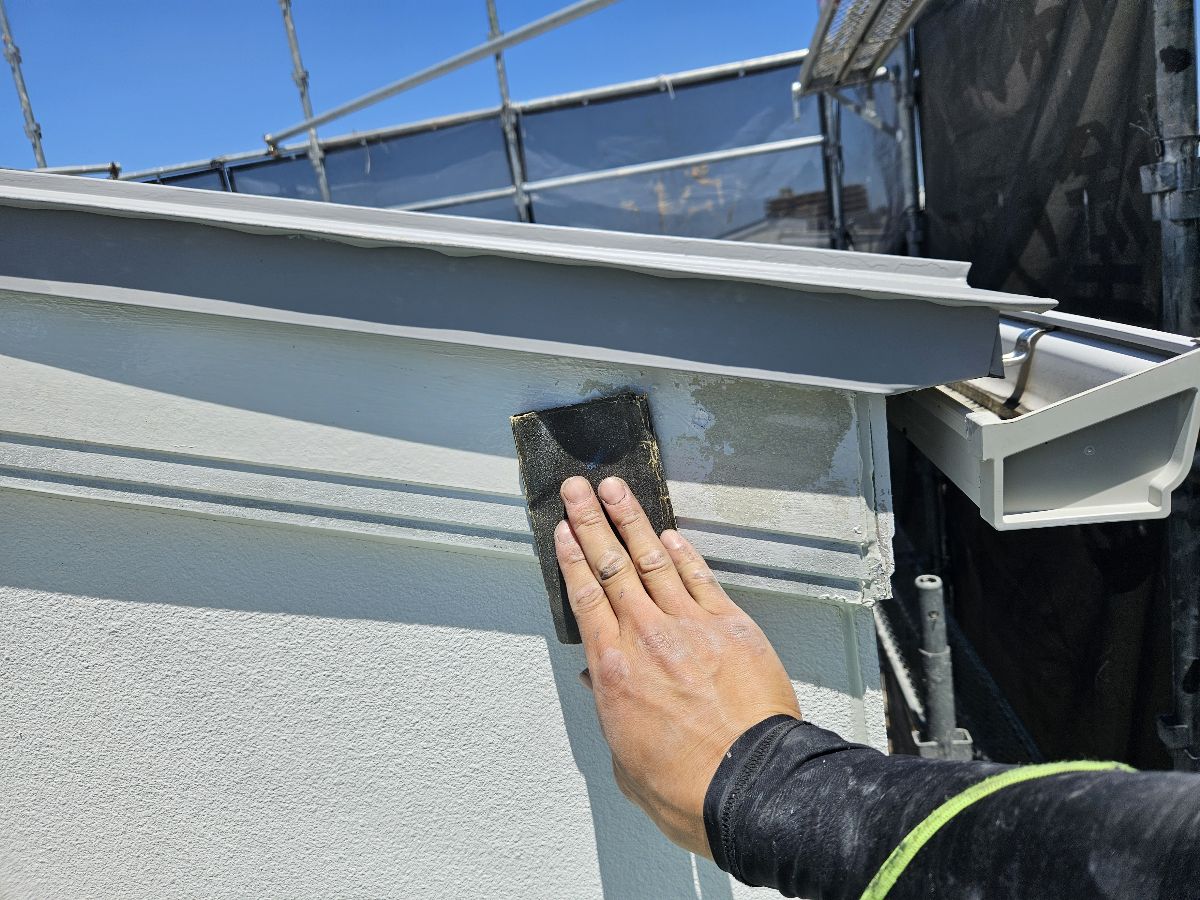 屋根については、ドローンを使用して安全かつ詳細な調査を実施しました。全体的に退色が進んでおり、破風板には塗膜の剥離も確認されたため、付帯部を含めて丁寧な下地処理を行いました。
