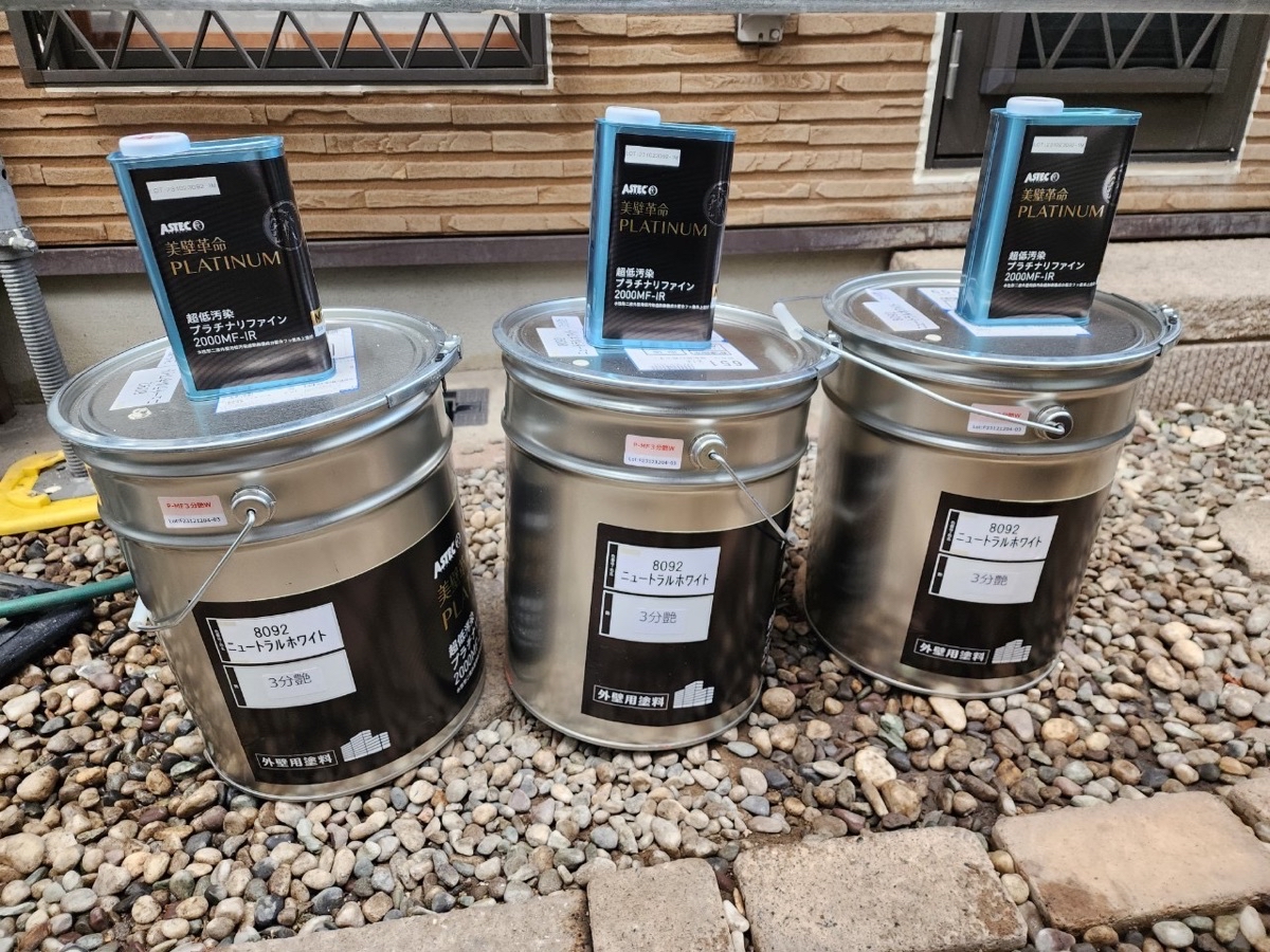 使用済:外壁上塗り材/超低汚染プラチナリファイン2000MF-IR/ニュートラルホワイト