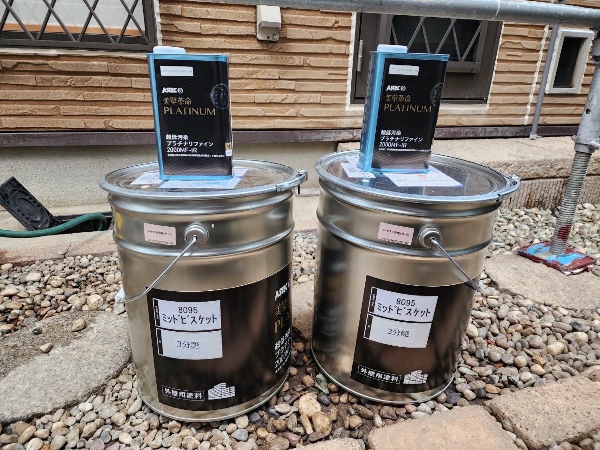 使用済:外壁上塗り材/超低汚染プラチナリファイン2000MF-IR/ミッドビスケット