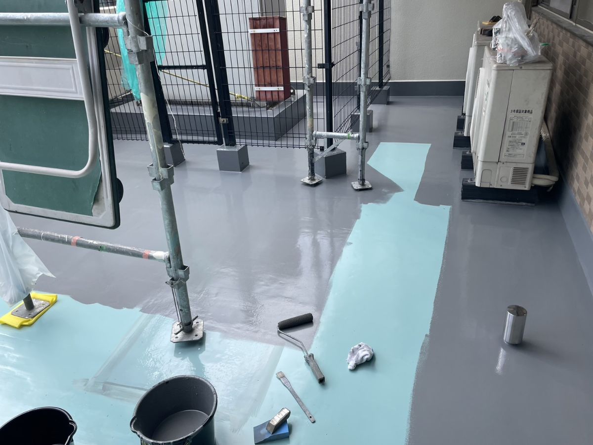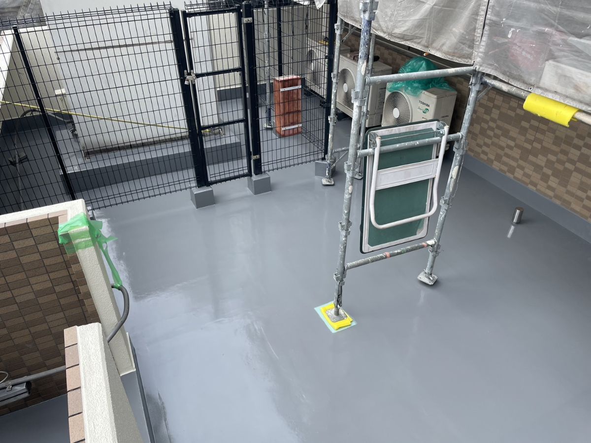 特に防水面は下地の状態を考慮し、ウレタン防水の通気緩衝工法をご提案。下地の水分による膨れリスクを抑えながら、長期的に安心できる仕様で施工いたしました。
